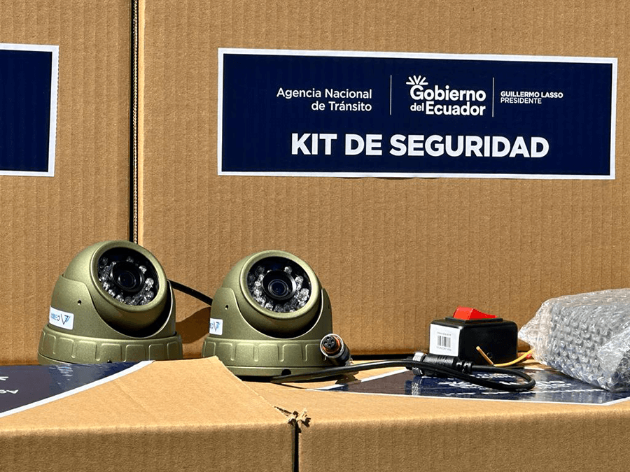 Los kits se componen de: dos cámaras de seguridad, un botón de auxilio, un GPS y una antena, mismos que serán monitoreados y controlados desde el ECU 911, a través de la plataforma del Sistema Integral de Transporte Público y Comercial (SITPC) por la Policía Nacional, gracias al convenio de cooperación que se suscribirá con el Ministerio del Interior.