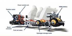 Baterías de hidrógeno y eléctricas de Hino Motors.