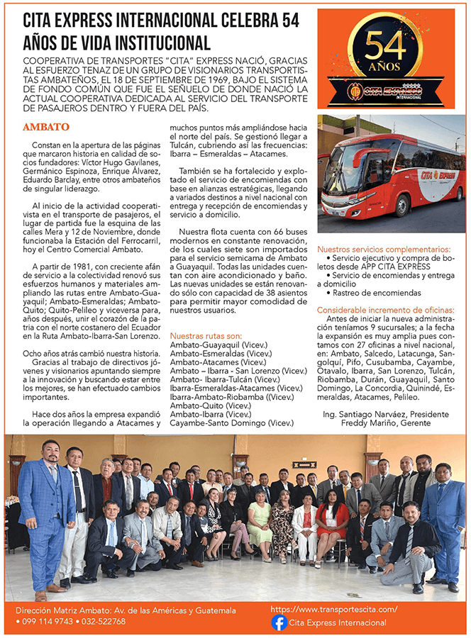 54 años de vida institucional, gracias al esfuerzo tenaz de un grupo de visionarios transportistas ambateños.
