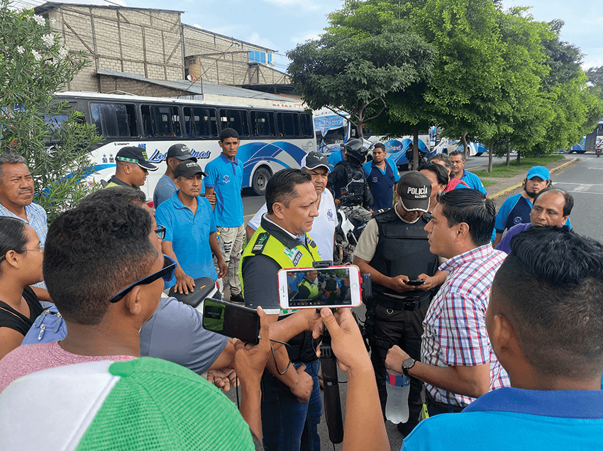 En efecto, se pudo evidenciar que un vehículo que no pertenece a la Institución con tres Agentes siguieron a una unidad para pedir documentos, así lo expresa el presidente de Coop. Las Palmas, Ab. Freddy Freire. “No es posible que malos funcionarios se dediquen a hostigar y perseguir a quienes laboramos dentro del marco de la ley. Se les explica a los agentes, pero no entienden. Claro que no son todos pues hay buenos elementos; pero, muchos se equivocan y no vamos a soportar estos atropellos”. Guevara reconoce que los agentes no pueden seguir a los conductores en vehículos ajenos para pedir documentos. “Es un impase con un chofer de esta operadora y el agente realizó un mal procedimiento, vamos a dialogar con nuestro personal y mejorar las relaciones con los ciudadanos”.