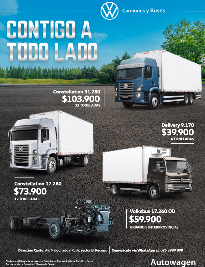 Constellation 31.280 de 22 toneladas – Constellation 17.280 de 1,2 toneladas – Delivery 9.170 de 4 toneladas – Chasis Volksbus 17260 OD Urbano e Interprovincial.