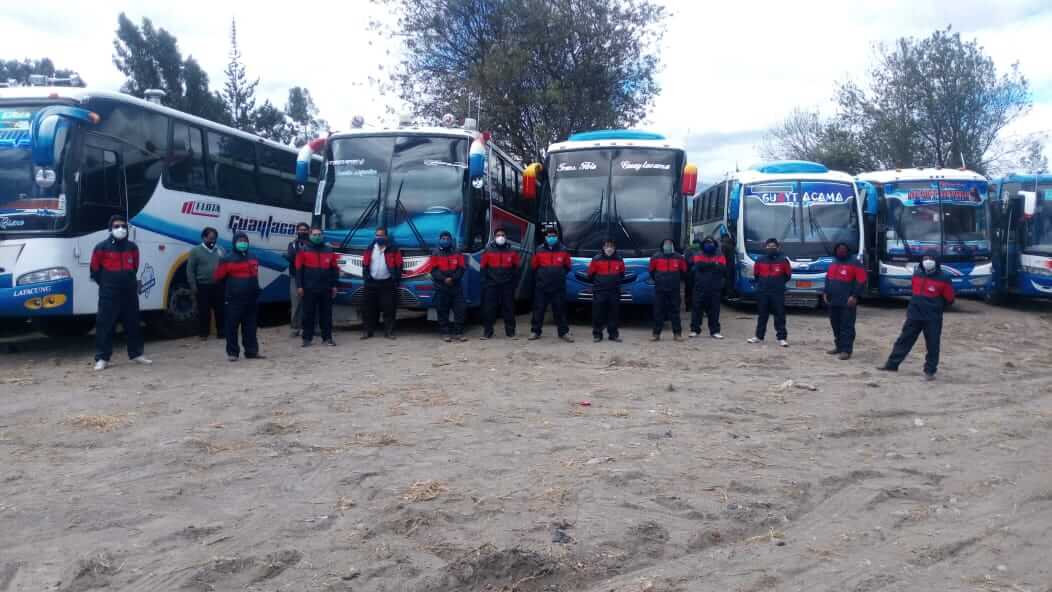 La Cooperativa Guaytacama, su presidente Santiago Guamani ha dotado a los conductores de trajes de bioseguridad y el kit para desinfectación para garantizar a sus usuarios el traslado seguro.