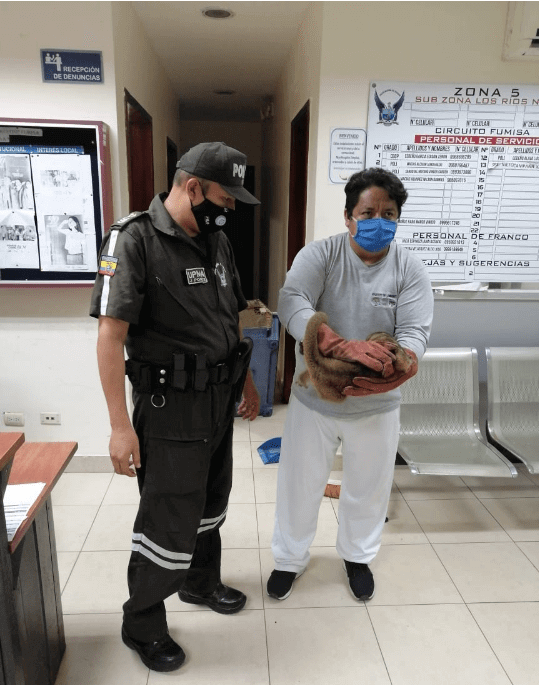 Frente a esto, nuestro buen amigo entendiendo que pedía ayuda decidió prevenir que pudiera morir si lo abandonaba y lo llevó hasta la UPC Fumisa en donde el Cbos. Mílton Wilton lo recibió y procedió a darle algún tipo de alimentación y cuidados mientras coordinaba con la Unidad de Protección de Animales de la Policía Nacional para trasladar a pequeño Cusumbo a su hábitat. El Sgos. José Puna y el Cbos. Javier Fuentes se hicieron cargo de llevar al indefenso y amigable Cusumbo a un área de rescate.