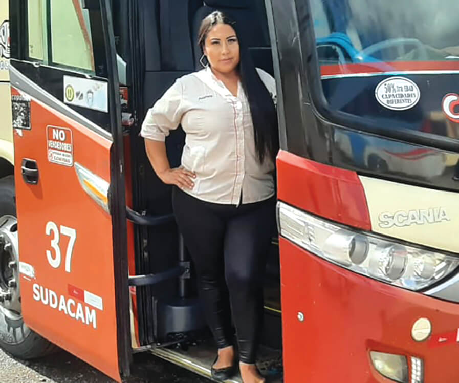 Su rol es la limpieza de la unidad, revisar boletos, dirigirles a sus asientos, poner películas o música, abrir las puertas del baño, estar pendiente de quienes se quedan, entregar maletas. “Un trabajo de atención al cliente que me gusta mucho”.