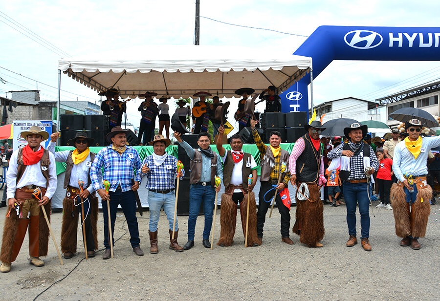 Participaron 10 vaqueros adornados con zamarros, machete y soga al cinto, sombrero y espuelas. La participación fue impecable para un público que no paró de aplaudirles y al mismo tiempo gozaron sus ocurrencias como el baile del tik tok que arrancó carcajadas y silbidos de emoción.