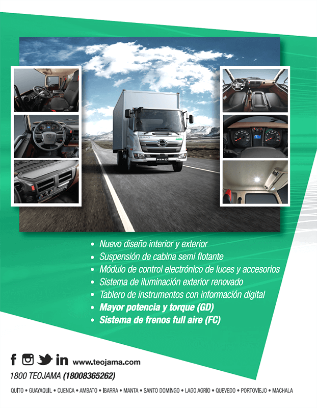 Nuevo diseño – Suspensión de cabina semi flotante – Módulo de control electrónico de luces y accesorios – Iluminación exterior renovada – Tablero digital – Mayor potencia y torque (GD) – Frenos full aire (FC)