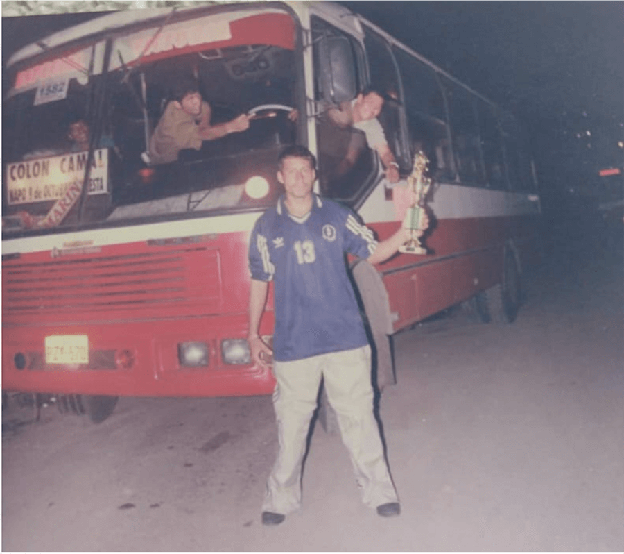 En la imagen luce triunfal Don Tello con sus allegados luego de alguna jornada deportiva de su compañía, sentado al volante de aquel “montón de fierros” que lo hacen feliz.
