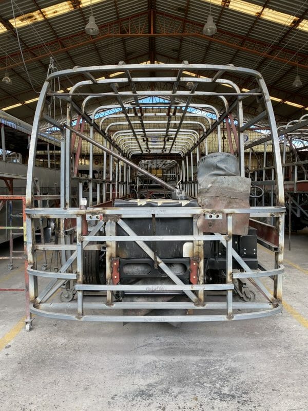 Se hacen dos revisiones: Primera cuando está 100% en estructura la realizan los Organismos Evaluadores de la Conformidad (OEC): CCICEV, CADME, CEDINAP. Constatan que lo construido cumpla con el plano; verifican la soldadura, uniones entre chasis y carrocería, ajustes al torque correcto. Esta revisión garantiza la seguridad de la unidad. Segunda cuando el bus está terminado, miden el alto, ancho, largo, voladizos, distancia entre asientos, tipo de vidrio, etc. Terminadas las revisiones empezamos el proceso de la homologación.