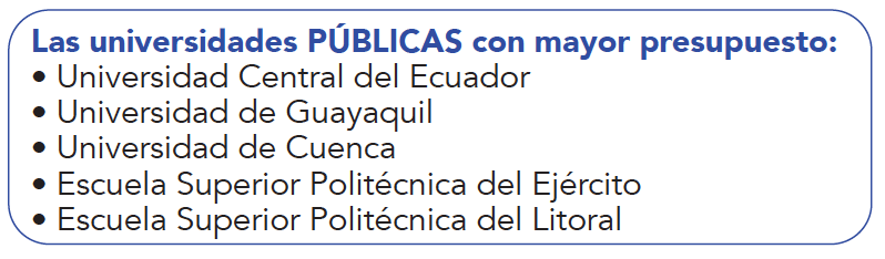 - Existen 33 universidades, escuelas politécnicas e institutos de educación superior públicos.