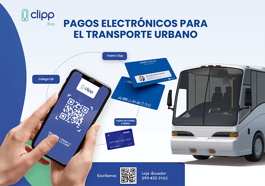 Según la ley, en las ciudades que sobrepasan 200 mil habitantes, el transporte urbano debe manejar la Caja Común y Recaudo Electrónico. Hay empresas que están implementando paso a paso estos sistemas, instalando el control flota mediante rastreo satelital y contadores de pasajeros (SAE), Sistemas de Información al Usuario (SIU) y Sistemas de Recaudo Electrónico (SIR). Para apoyar a las empresas que no pueden invertir en equipos e infraestructura, Clipp Bus ofrece la alternativa del Código QR, el cual se implementa en cada unidad para el recaudo electrónico. Los usuarios validan ese código QR al momento de realizar el pago. Esto es algo nuevo y se debe socializar con la ciudadanía, pues no solo se utiliza en el transporte, sino en todo tipo de negocio y brinda facilidad y agilidad al usuario.