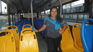 Mujeres oficiales se toman el transporte urbano
