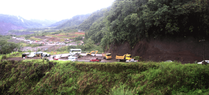 En el primer tramo en Quijos, el deslizamiento de tierra es muy acelerado y prácticamente la vía se pierde a consecuencia del terreno muy deleznable, da la sensación que el MTOP deberá construir la ruta por otro sector, pues esta vía ya no da más.